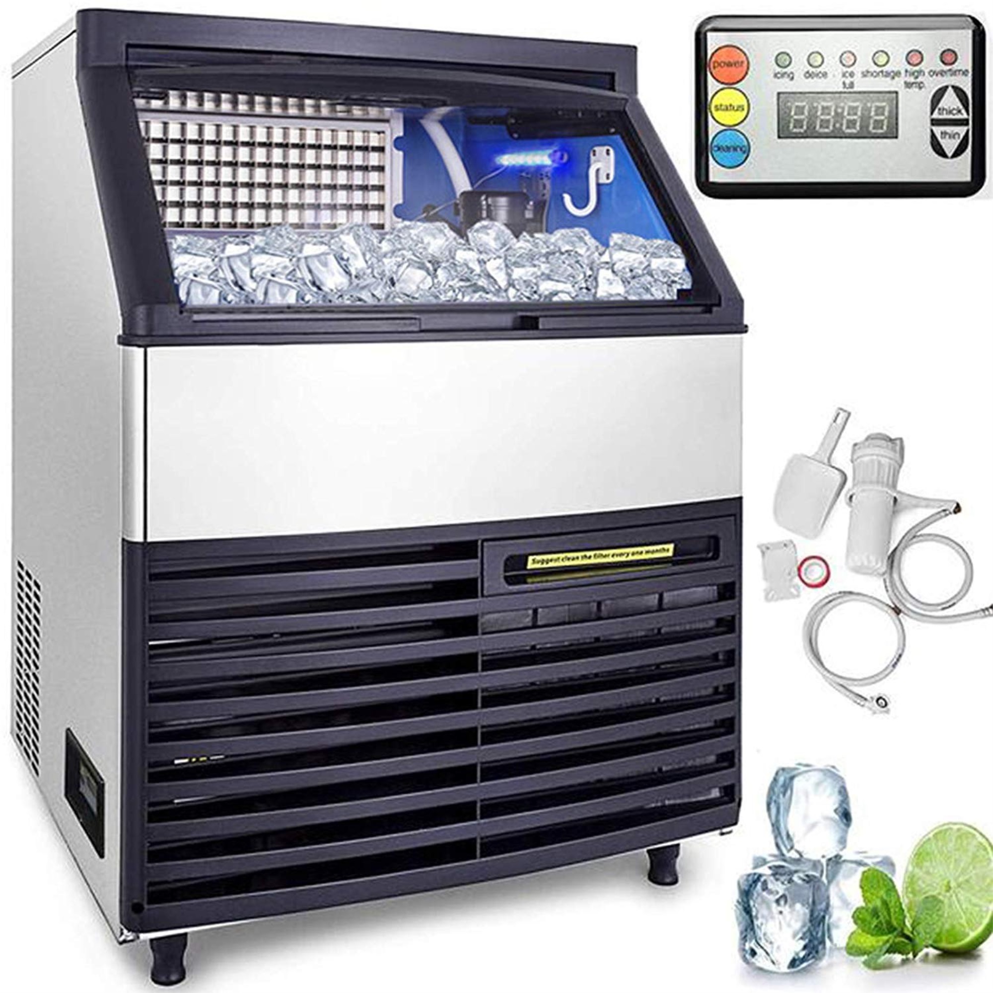 Buy Vevor 110v Commercial Ice Maker 125lbs 24h With 50lbs Bin Etl Approved Heavy Duty Stainless Steel Construction Auto Clean Clear Cube Air Cooled Include Water Filter And Drain Pump Online In Maldives B08bwpzrm7